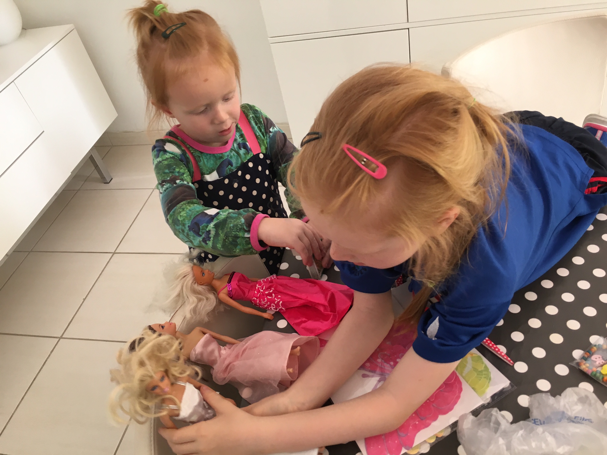 Til sidst tilter Mille omkuld på gulvet. Af træthed og mæthed.
