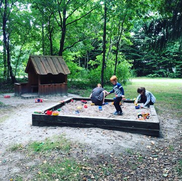 Nu om dage har et hollandsk værtspar åbnet et pandekagehus, hvor iskiosken plejede at ligge. Min barndoms Faxe Kondi’er og blinklys-limonade-is er skiftet ud med Hansen Is og store fadbamser, tilsat søde og salte pandekager med varieret fyld. Hollænderne virker lidt excentriske og holder bl.a. påfugle og høns rundt om restauranten, plus 3-4 løse hunde. Jeg ved ikke rigtigt, hvad jeg skal tænke om det, men legepladsen er god – og udsigten over søen fejler ikke noget.