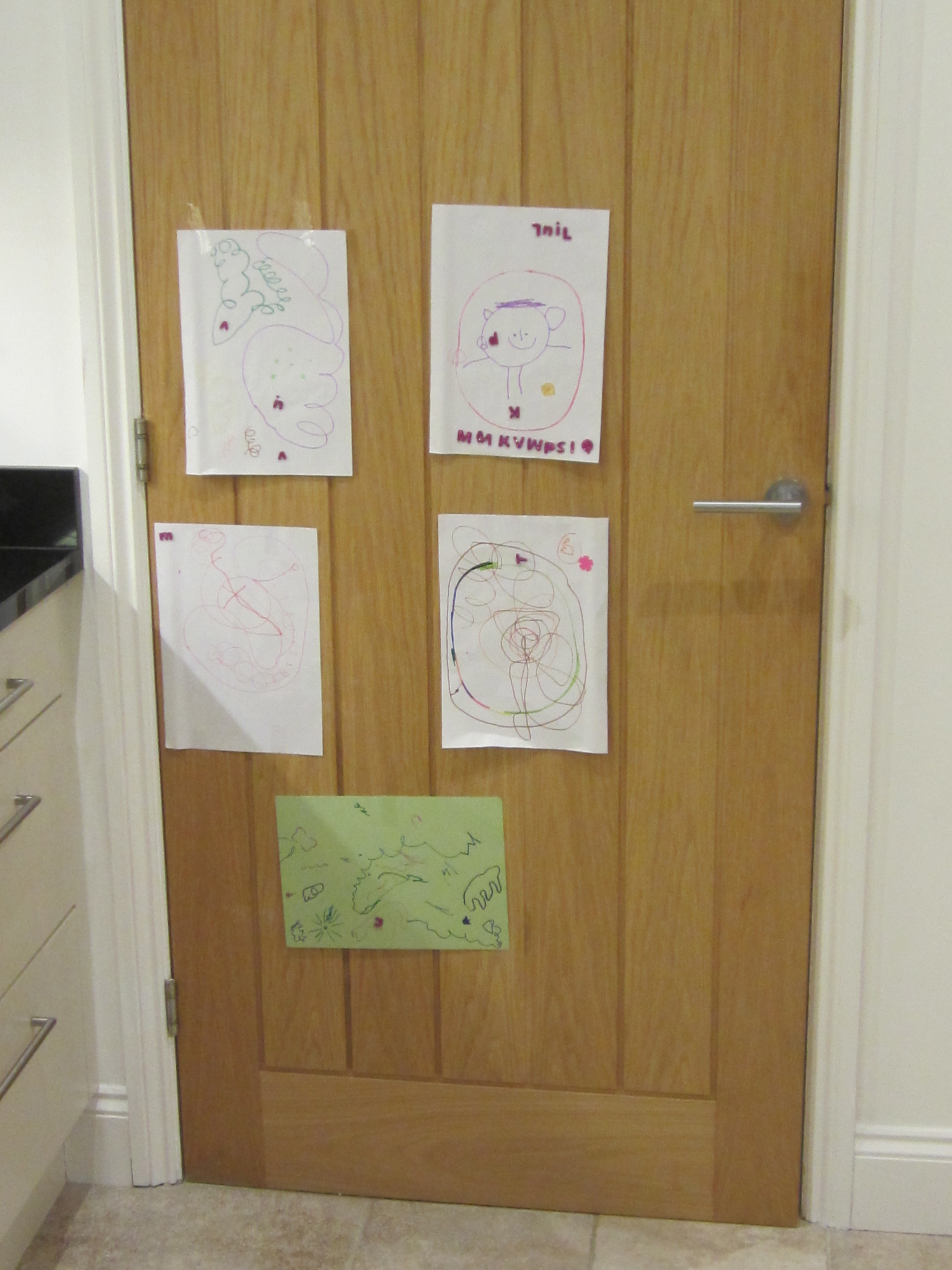 En af de mest populære aktiviteter i skolen har tydeligvis været at skrive breve og kort til hinanden. Børnene har haft en kasse med navnekort og har så valgt en kammerats navnekort, kopieret navnet og tegnet og skrevet af hjertens lyst. Cille har med stolthed produceret og modtaget en masse kort og tegninger, hvilket er en rigtig sød måde at bygge venskaber på, samtidig med at de alle nu som minimum kan genkende hinandens begyndelsesbogstav.