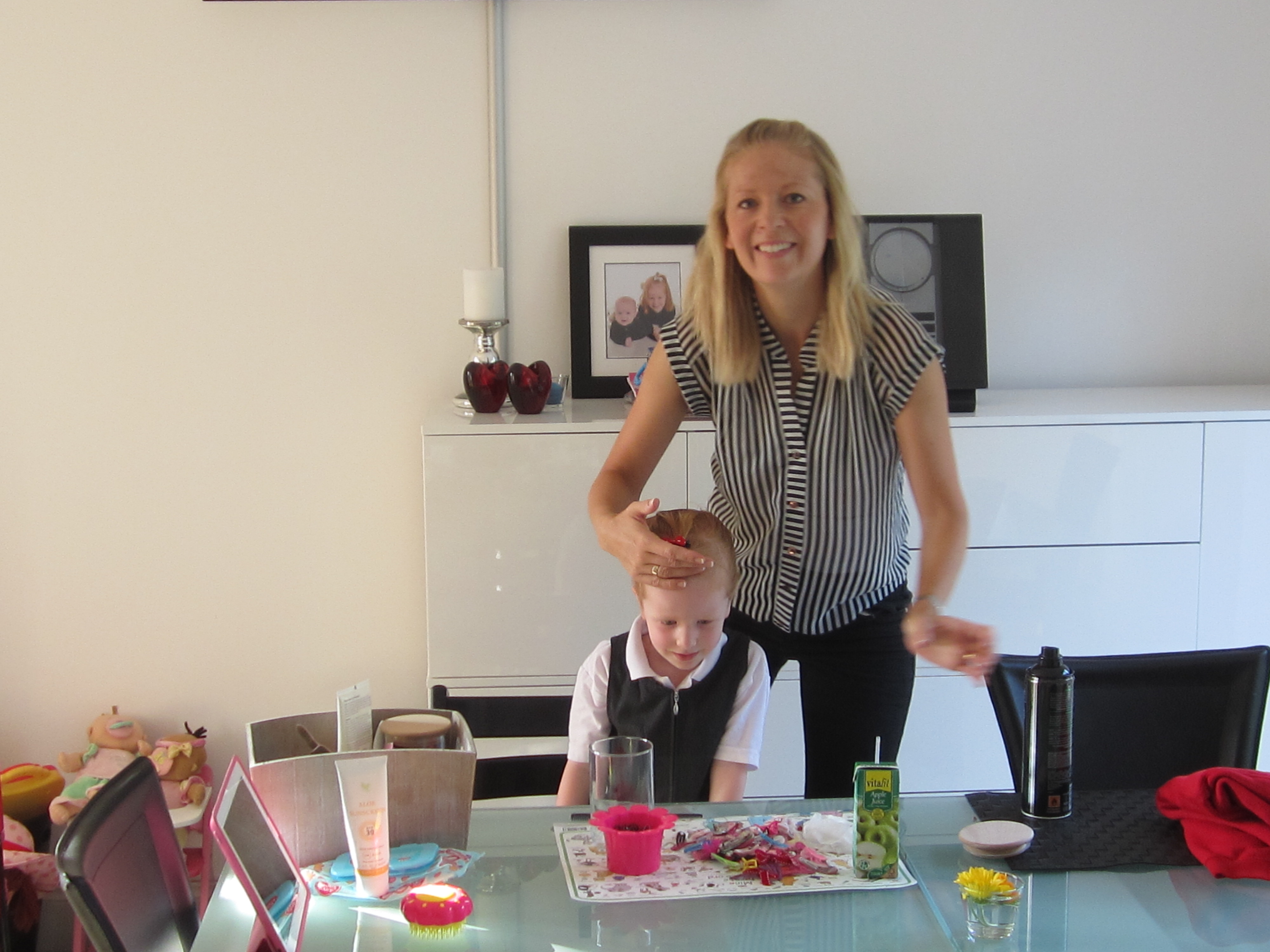 Skolepigens hår sættes pænt
