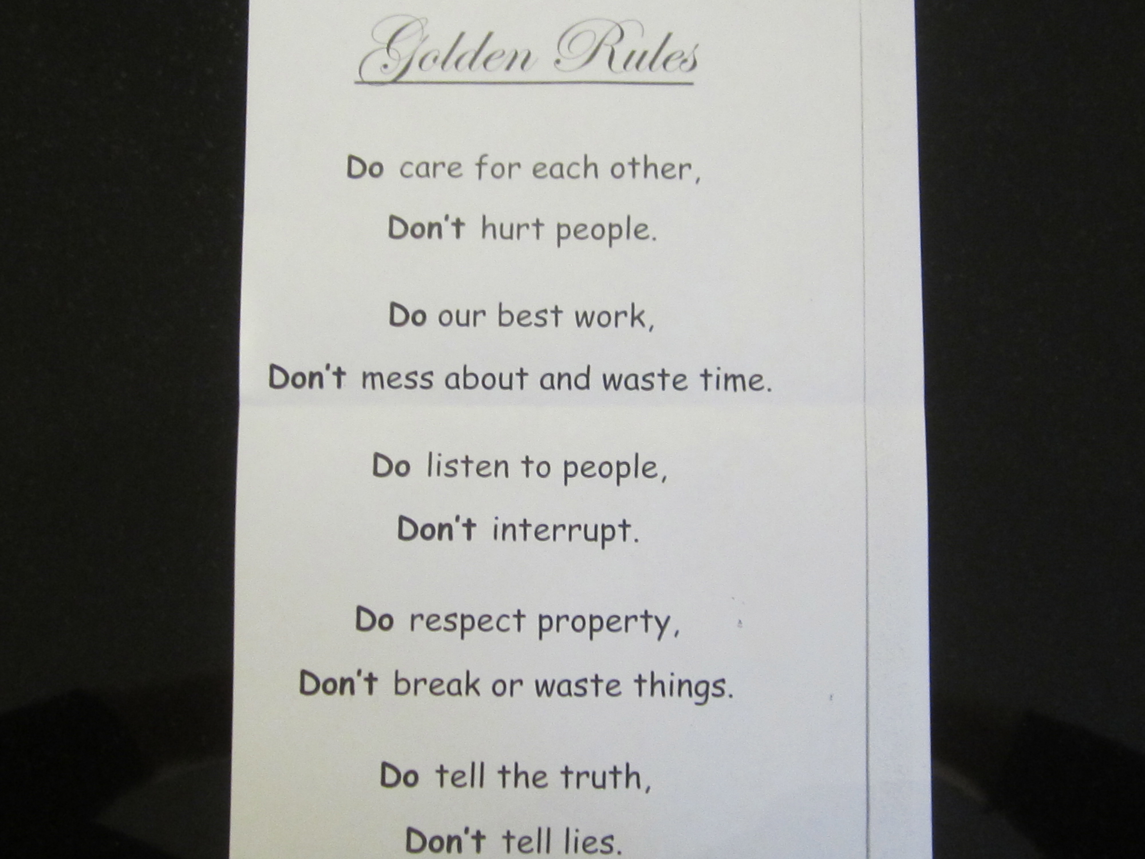 Set med danske øjne er det nogle ret sindrige systemer til belønning af den ønskede adfærd og straf af den uønskede adfærd. Ihvertfald når man har med 4-5-årige at gøre. Men det ser ud til at virke efter hensigten – for de fremviser alle stolte deres raffle tickets og fortæller begejstrede om fredagens aktiviteter til ‘golden time’.
