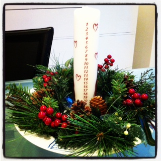 I eftermiddags fik vi lavet kalenderlyset klar. Takket være Farmor har vi skaffet et dansk kalenderlys – og jeg er sikker på at nedtællingen vil vække begejstring hos Skolepigen, der er vild med tal.