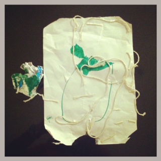 Den lille-store Skolepige var ærligt og redeligt kreativ her til eftermiddag, hvor hun producerede planeten Saturn (der er en papirkugle til venstre) og Månen, som er Saturns bedste ven (der er tegnet på papiret).