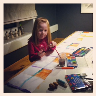 Vi har en halv times kørsel fra færgelejet i Esbjerg til vi lander hos Mormor på fødegården. Hun har indkøbt nye krea-ting til Cille, og der går kunstnerværksted i den med det samme.