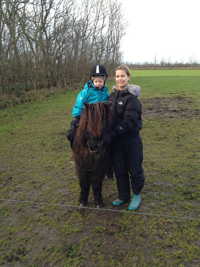Og i formiddags var Cille i børnehimlen hos min Moster og Onkel (dem, der bor på den anden fødegård). Dem elsker hun at komme hos – helst uden os. “I love them, fordi de har lots of animals”, som hun siger. Her ses den stolte rytterske på en nogenlunde godmodig Viggo – med kusine Cath som tovholder. Det fremgår med al tydelighed at der ikke bliver tale om hvid jul i Vest-Danmark i år. Desværre.