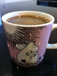 I takt med at Mummi-kaffekoppen tømmes, stiger humøret og regndråberne på ruderne bliver færre.
