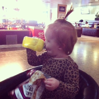 Vi sniger os til at købe kaffe og popcorn i caféen. Klatrer rundt i centrets lille soft play. Kysser og kilder, pjatter og snakker.