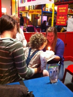 Lørdag blev Mille hjemme og sov lur, mens jeg tog Cille med til et soft play, hvor min veninde/babysitter’s datter holdt sin 2-års fødselsdag.