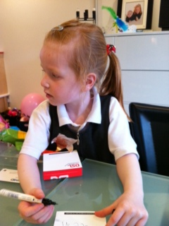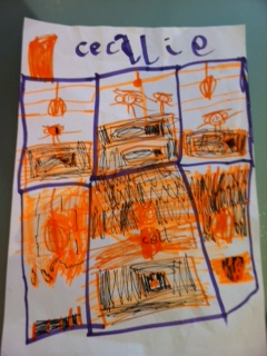Og meget apropos kommer Cille i dag hjem fra skole med den fineste tegning af vores hus med værelser, møbler og hele familien samlet.