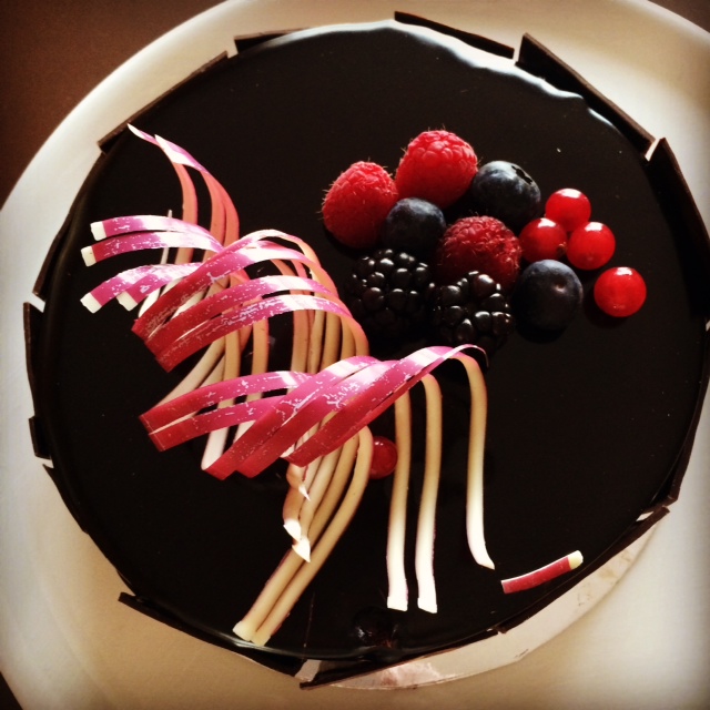 Efter aftensmaden får vi den fine fødselsdagskage, som hotellet har stillet til Martin, mens vi har været ude. Ret heldigt, at de har gjort det – for jeg kan ikke bage kage i vores lejlighedskøkken.