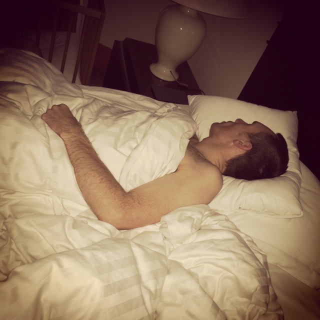 Fødselaren hører intet af vores forberedelser her til morgen. Han sover dybt og roligt.