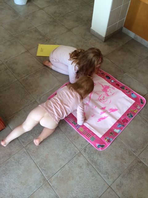 Pigerne er vilde med at tale i telefon og skrive på tastatur. Vand-køleren er også en hel begivenhed i sig selv.