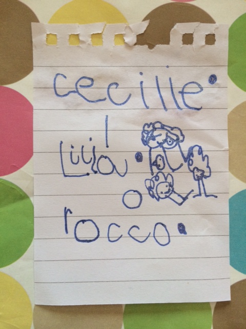 Cilles tegning af fangeleg med to gamle klassekammerater - Rocco og Lilia