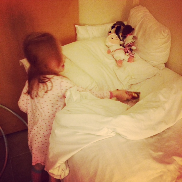 Påskeharen har gemt chokolade i Cille’s seng. Det er for varmt udenfor til traditionel æggejagt.