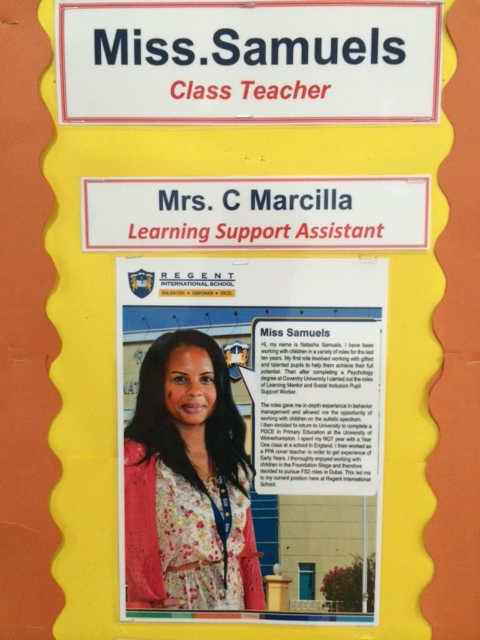 Det tegner til at blive en supergod klasse, en dejlig klasselærer og en fin introduktion til skolelivet her i Dubai for vores 4-årige trunte.