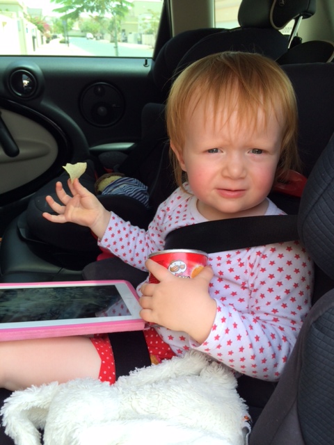 Der indlægges en omvej forbi bilen, hvor Mille sidder parkeret med iPad, sut og chips. Hun smiler og siger “Hi Mummy”, når jeg med jævne mellemrum stikker hovedet ind til hende. Jeg får stik af dårlig samvittighed, men hun kan jo for pokker ikke være inde i cirkus-huset.
