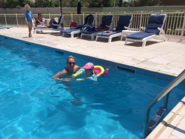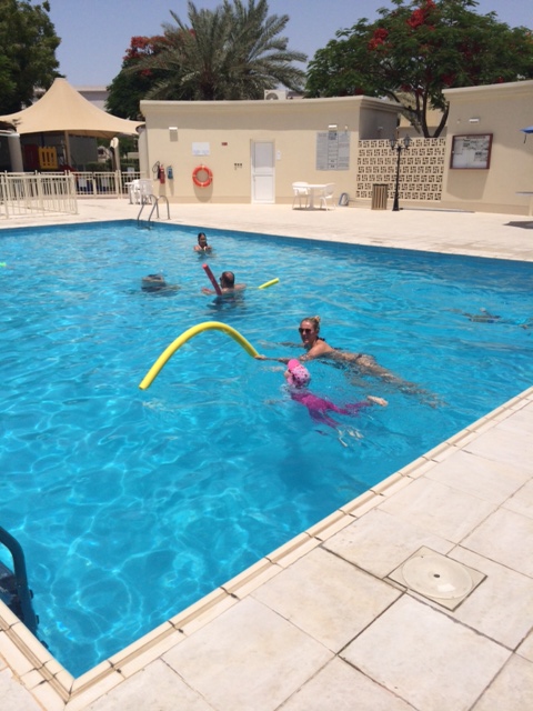 Hver fredag formiddag har Cille svømmeundervisning med sin “gamle” Ipswich-svømmelærer, Georgina, som også lige er flyttet til Dubai. Hun elsker Georgina og kluk-ler sig igennem timen – endda øvelserne med at få hovedet under vand, som ellers er grænseoverskridende for hende. Men ikke i hænderne på Georgina – der er hun fuldstændig tryg og tillidsfuld.