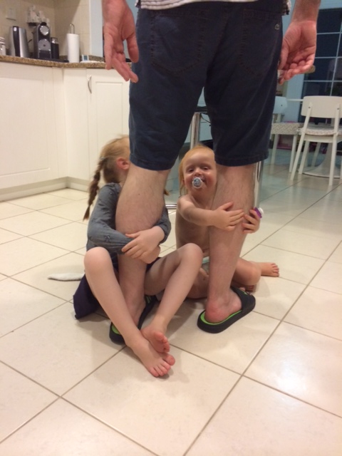Det er Daddy – og KUN Daddy, der dur nu! Og som man kan se på hans ansigt, så er han svært tilfreds med situationen og den udelte opmærksomhed fra en favnfuld døtre.