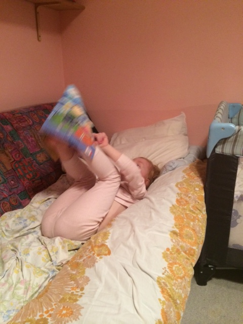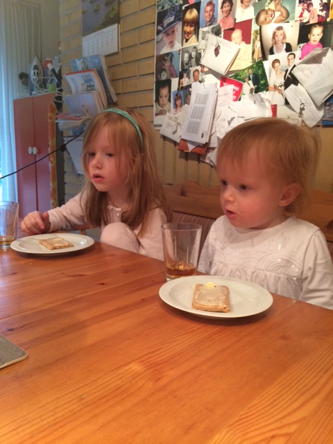 Og de vågner tidligt – på grund af tidsforskellen på et par timer – og på grund af begejstring over at være hjemme hos Farmor og Farfar.