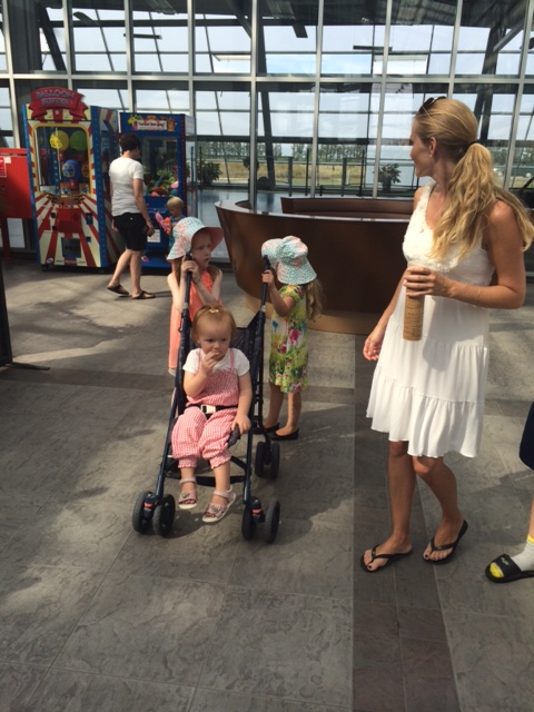 Vi når til Kolding, før pigerne trænger til at strække benene. Jeg forsøger at introducere dem til (chokerende dyr) dansk cacaomælk, når det er bedst. Desværre uden at spore den store begejstring hos døtrene. Hvad fanden er der i vejen med dem?
