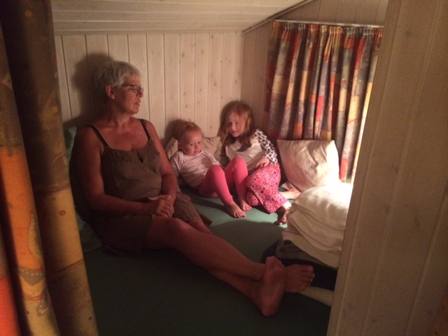 Der er godnat-hygge med Mormor i alkoven.