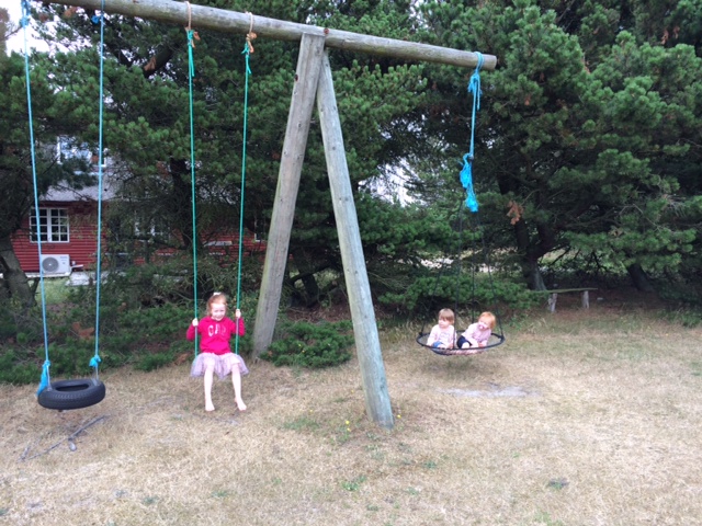 Mille får gyngeture i haven.