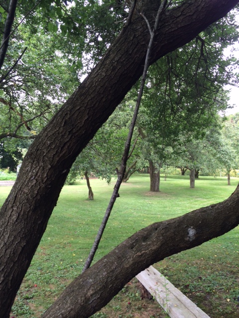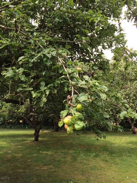 Hér i frugthaven gik jeg på rov efter blommer, mirabeller og æbler. Og på opdagelsesrejser og hemmelige ekspeditioner med enten hund eller kat på slæb.