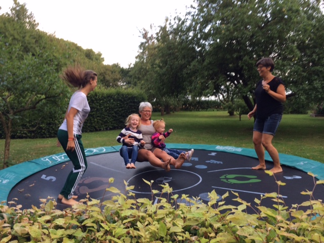 Aftenen slutter med en leviterende Mormor og masser af grin i trampolinen.