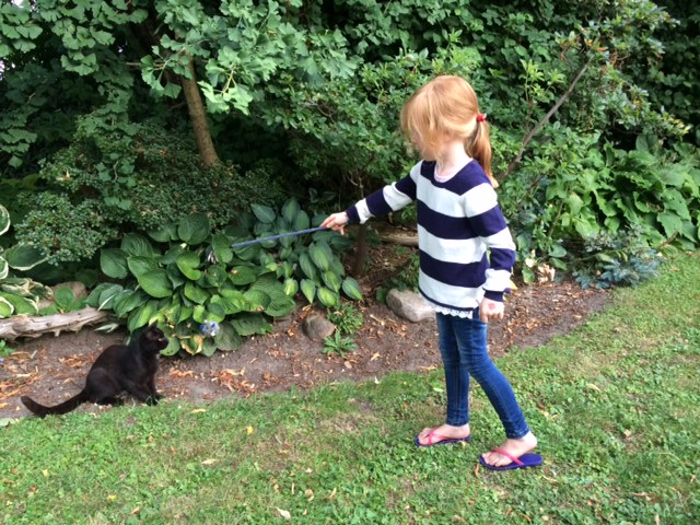 Så går det trods alt lidt lettere med ude-kattene. De elsker at lege katten-efter-musen.