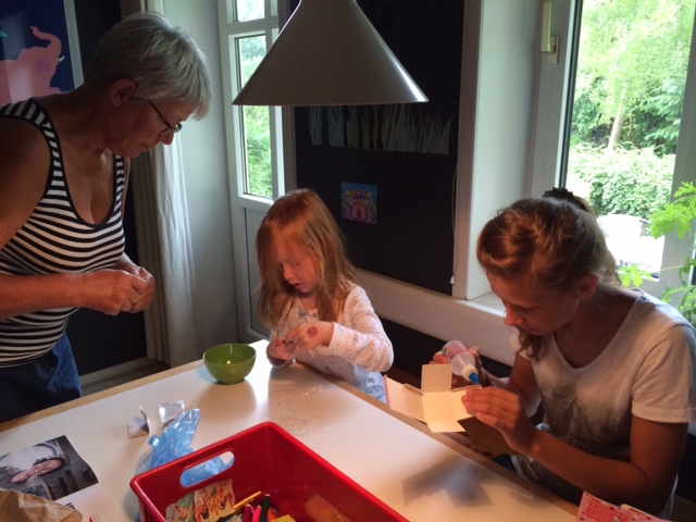 De bygger LEGO Friends og roder i krea-kassen.