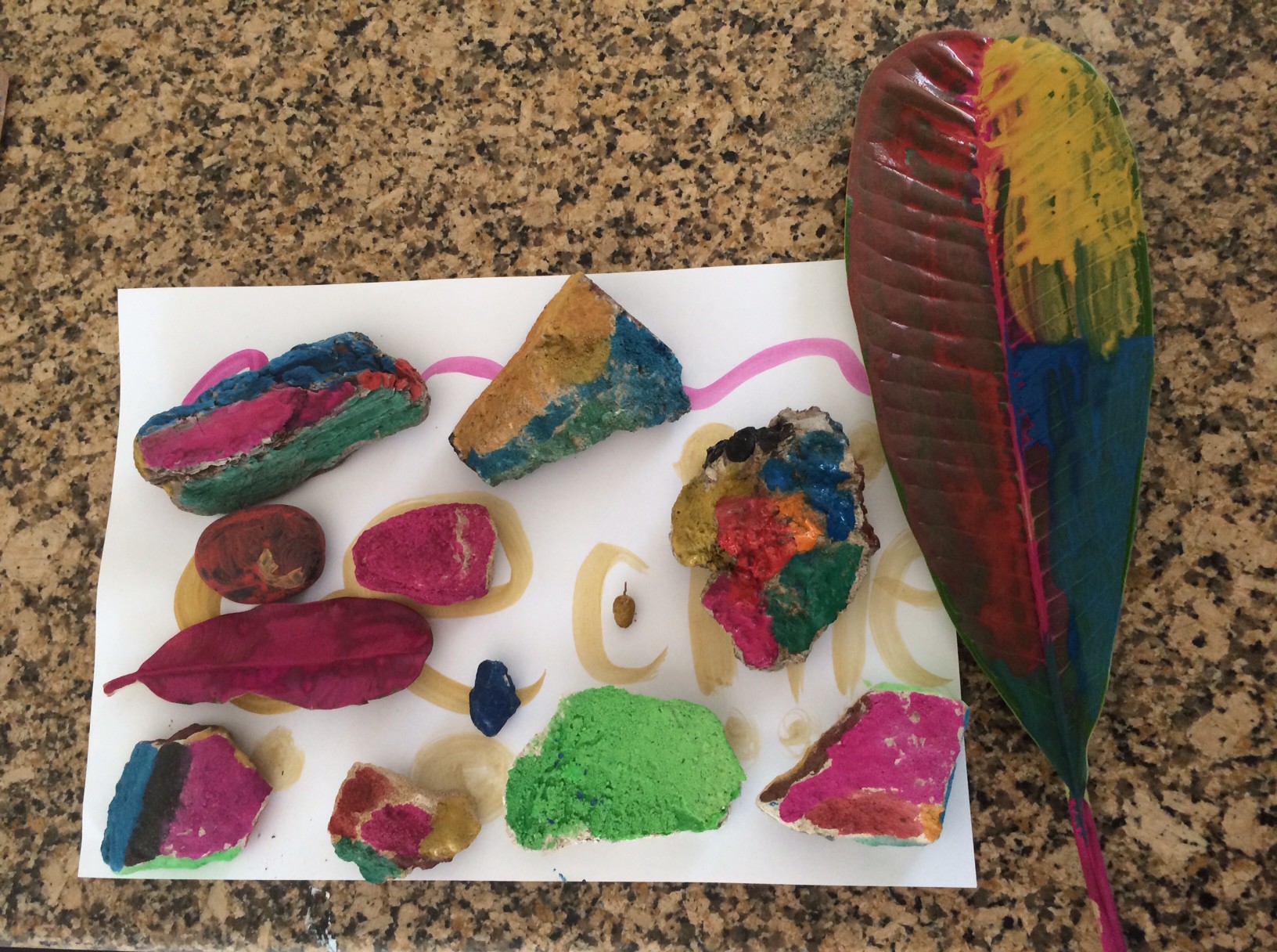 For tiden er hun glad for at finde sten og blade i haven, som hun maler på og sætter retur i et af bedene bagefter.