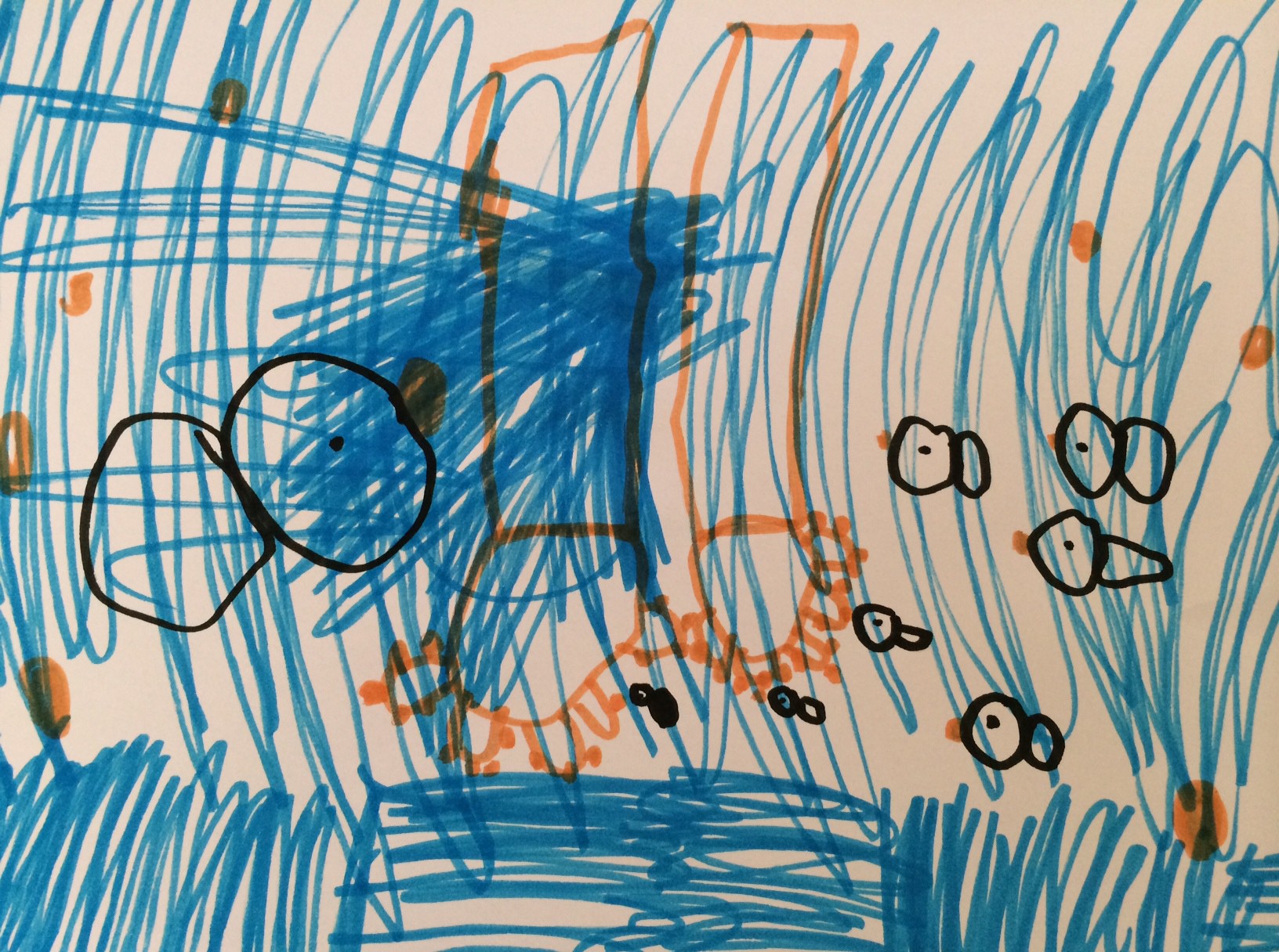 Cille drømmer om at prøve fiske-spa. Her har hun tegnet fiskene, der spiser den tørre hud på fødderne. Hun mener, at der snart må være hård hud på fødderne, nu hvor de trods alt har været levende i 5 år, som hun forklarer mig!