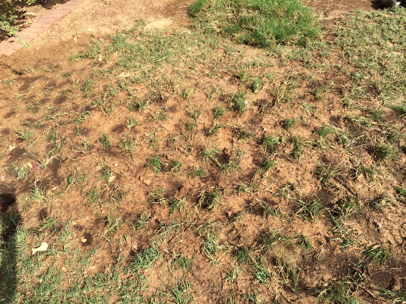 Og totter af vores eget græs, som er blevet flyttet til de ødelagte områder for at opmuntre til lidt grønhed.