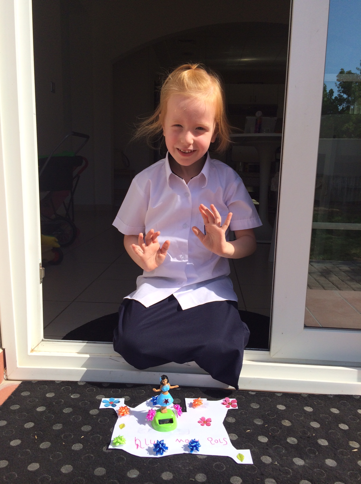 I vores tilfælde er det nu mig, der hopper ud af bilen og tager Cille med ind. Jeg tror ikke lige, at hun er klar til at gå hånd i hånd med en af de (ellers meget søde) lærer-assistenter.