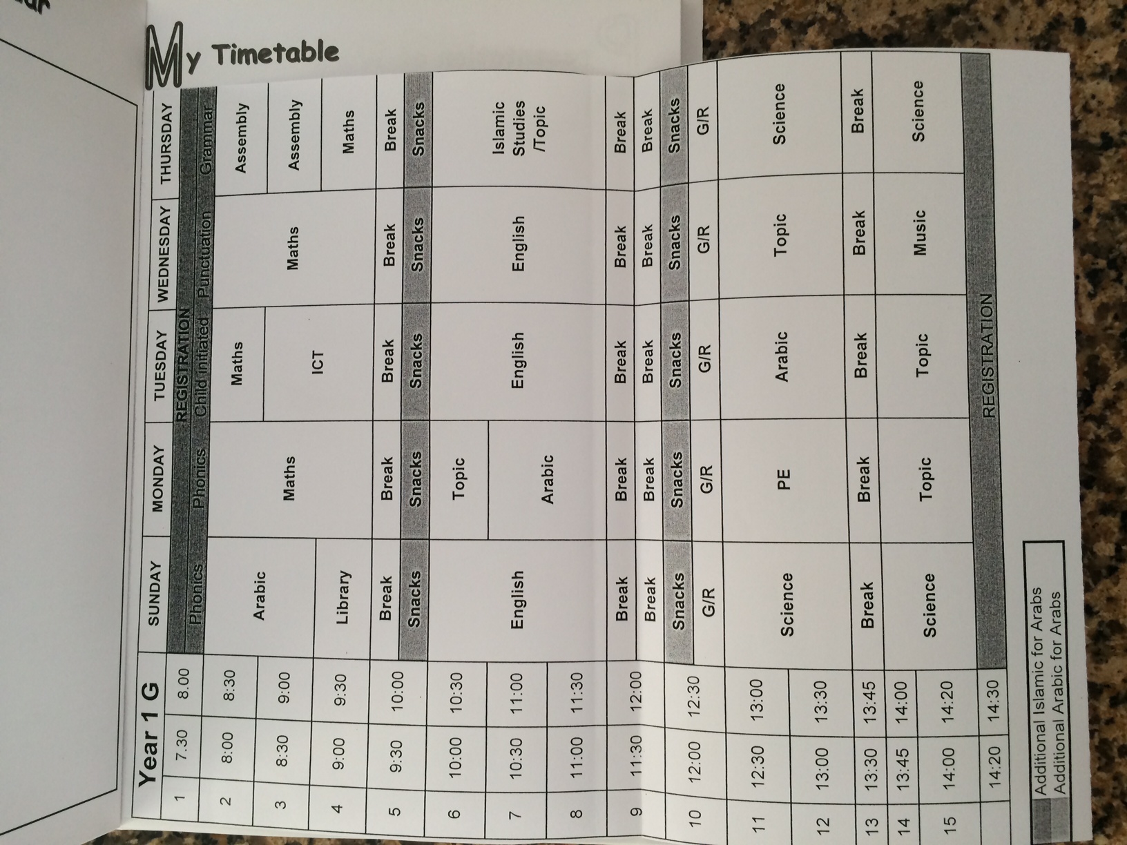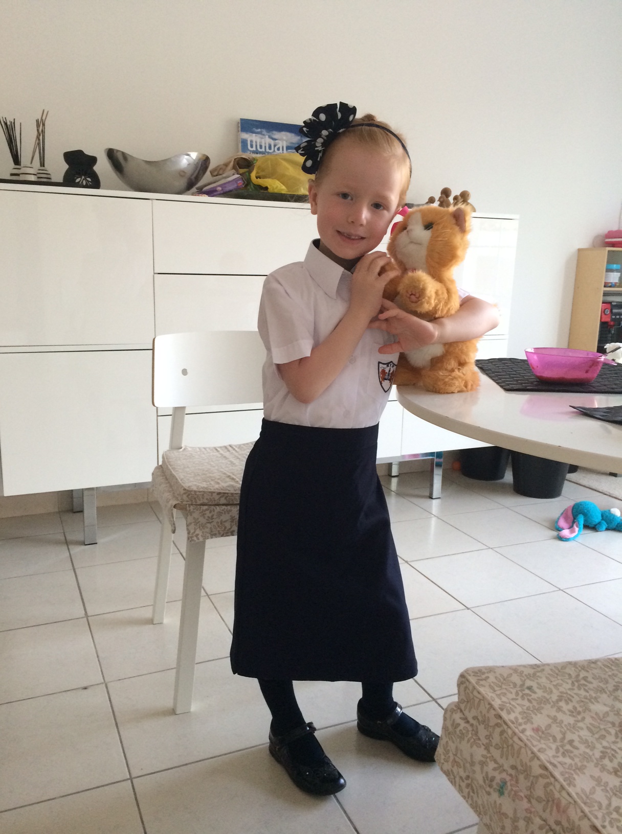 Jeg har lige talt med mine engelske bedsteveninder – som i øvrigt begge er skolelærere – og de er MEGET forundrede over det store skema, som slet ikke er det, der gøres under engelsk curriculum i England, når man kun går i 1. klasse … men når jeg så taler med andre mødre her i Dubai, så har deres små pus ligeså voldsomme skemaer. Suk!