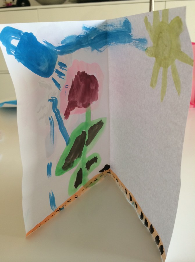 Cilles fødselsdagskort til mig – med blomster, der både need’er rain and sunshine, som hun siger