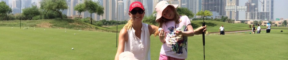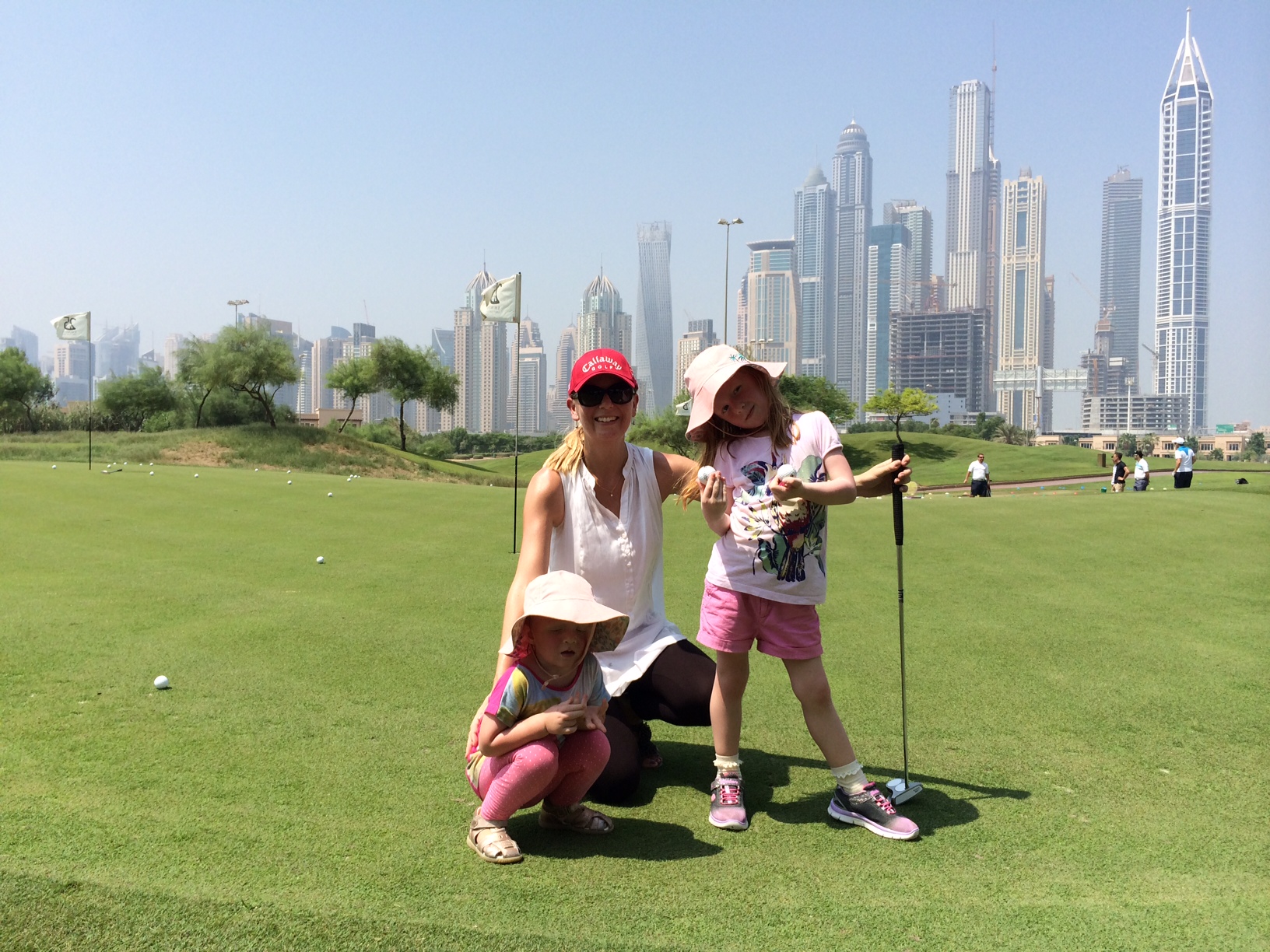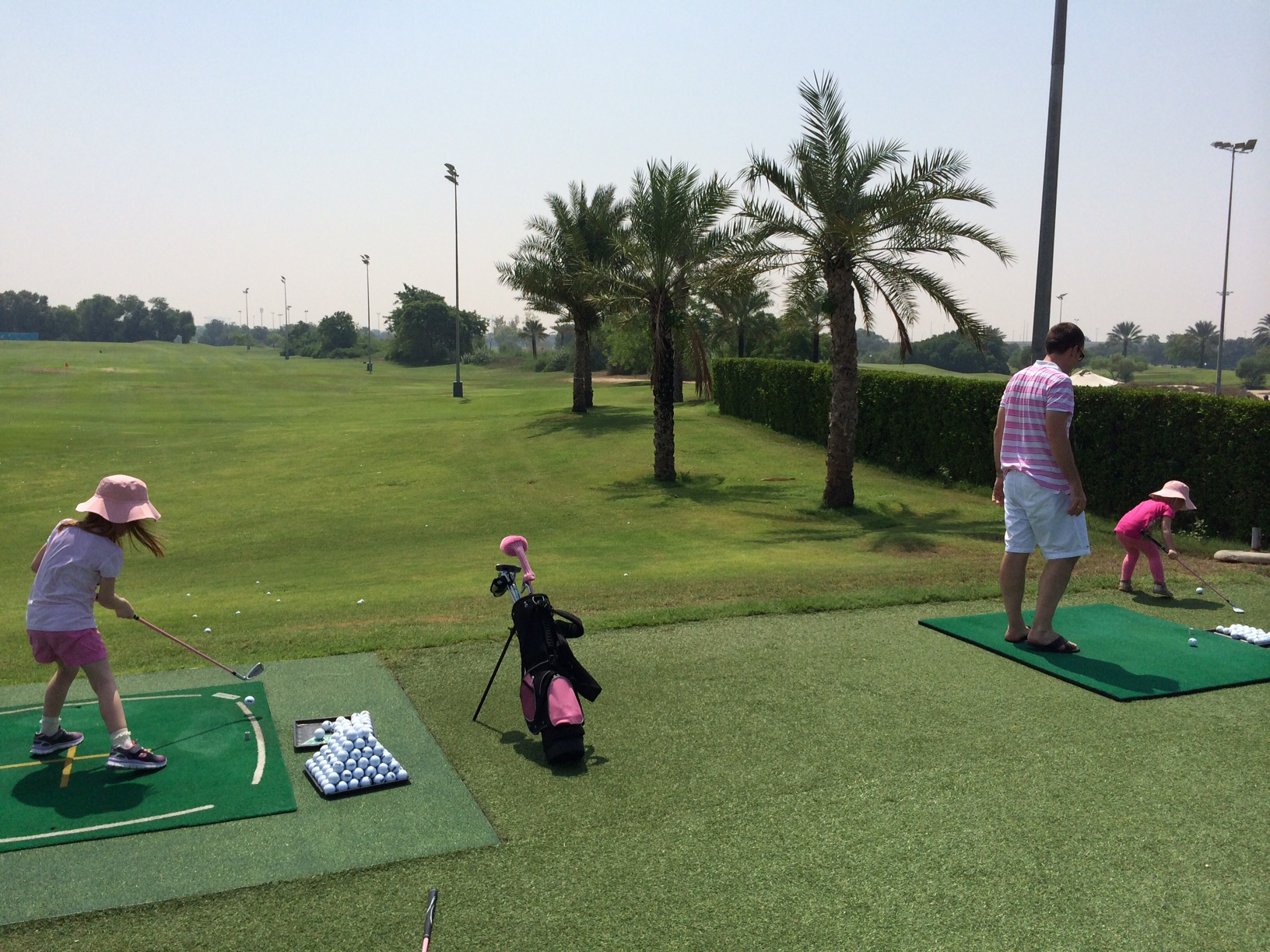 Vi har en drøm om at gå familie-golfrunder engang ud i fremtiden. Så vi forsøger at præge pigerne til at kunne lide spillet ved at lege med dem på driving range og putting green’en.