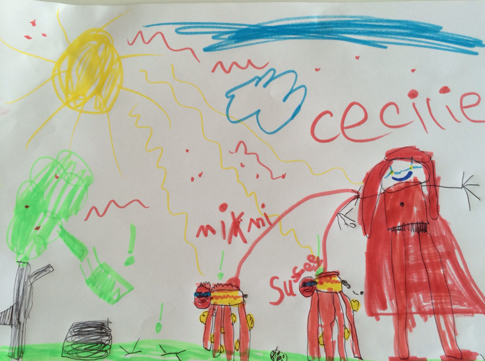 I fred med sit tegnegrej og sin indre verden, hvor hun går tur med Farmors hunde og bærer smukke kjoler.