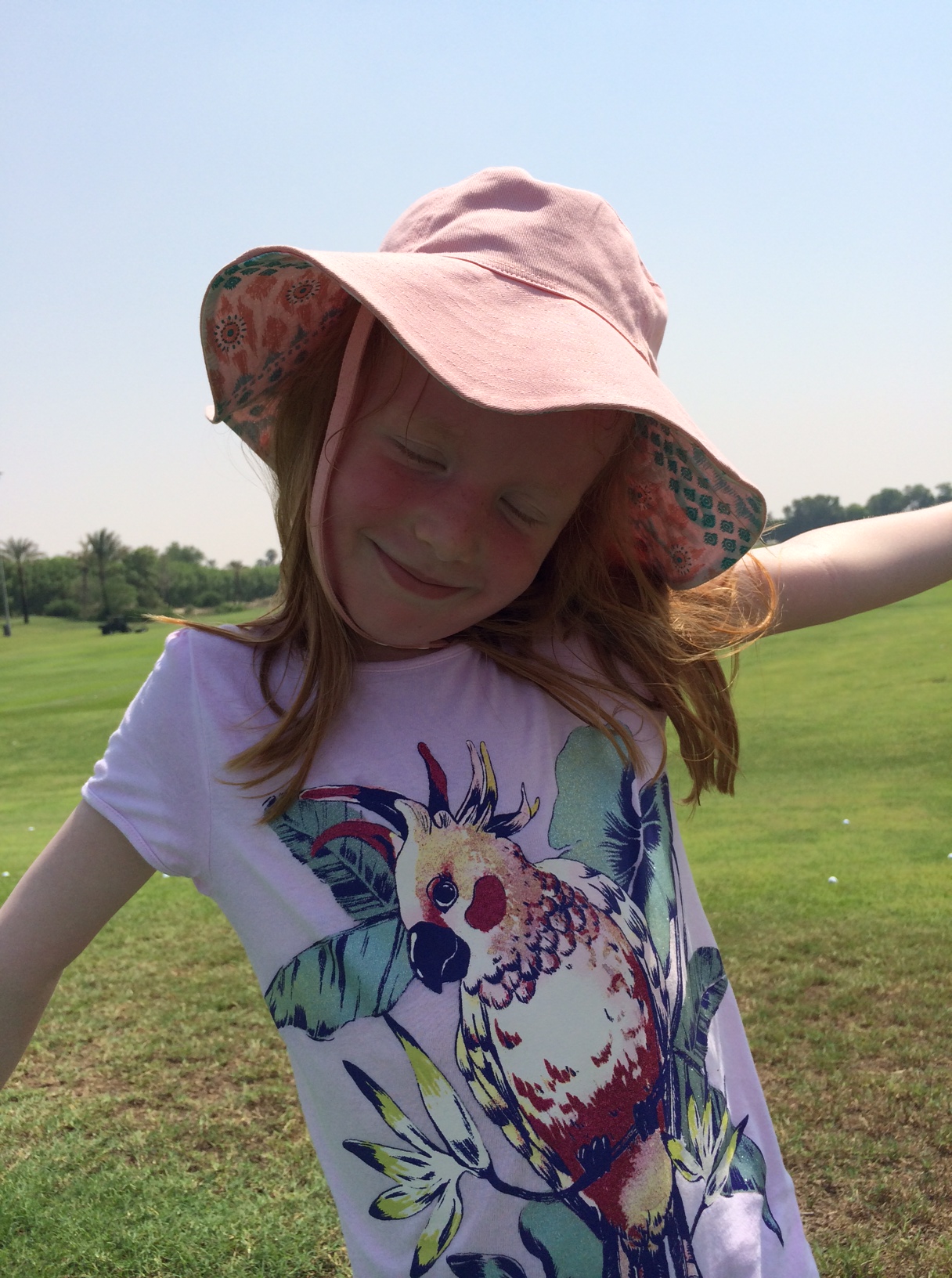 Cille er mere end begejstret. Selv i 37 graders ubarmhjertig-fugtig ørkenhede, er hun ustoppelig i et par timer.