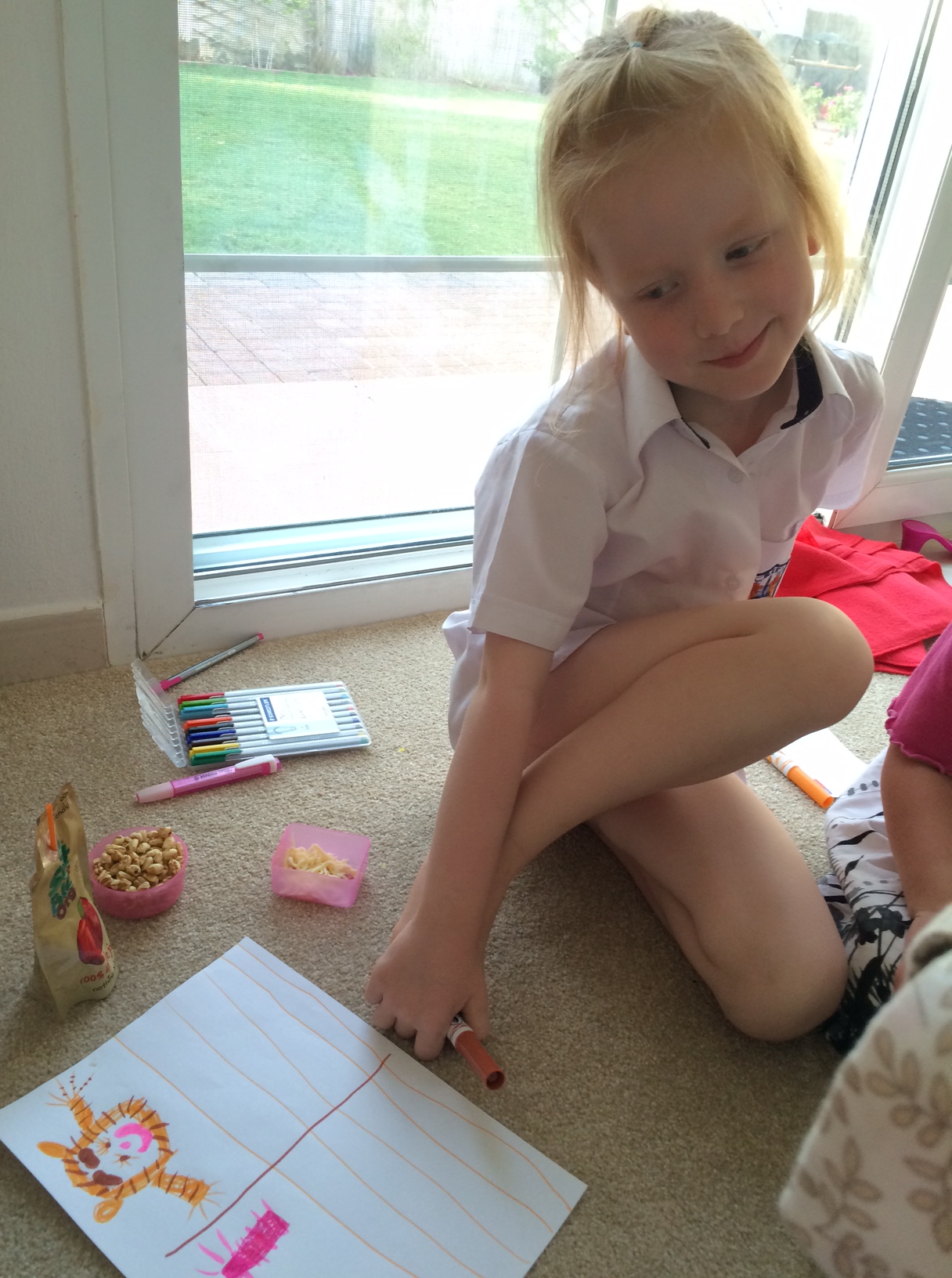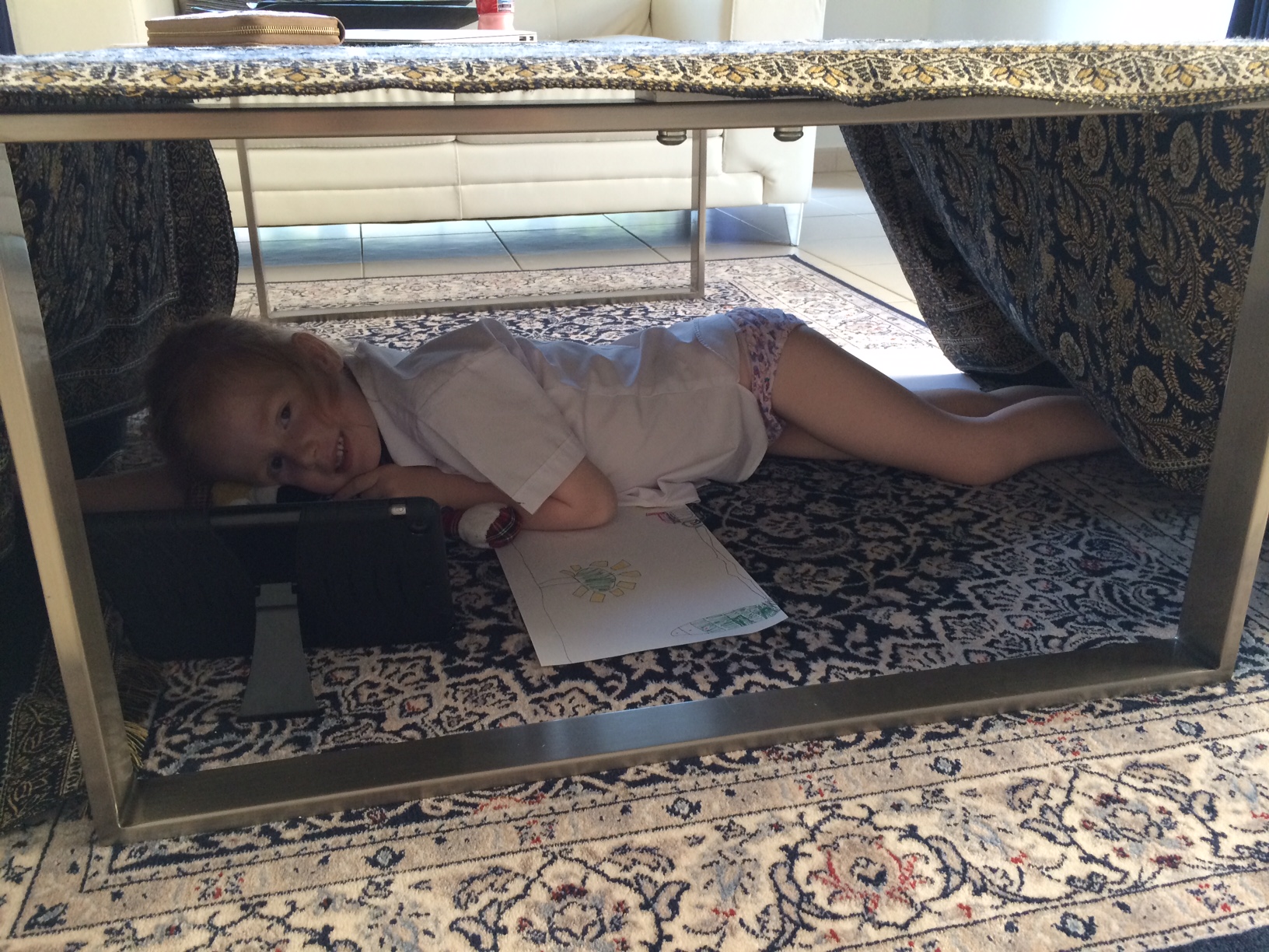 For det meste bygger jeg en hule til hende under sofabordet, hvor hun kan ligge i fred med “Charlie & Lola” på speed-repeat og en samling tuschpenne.
