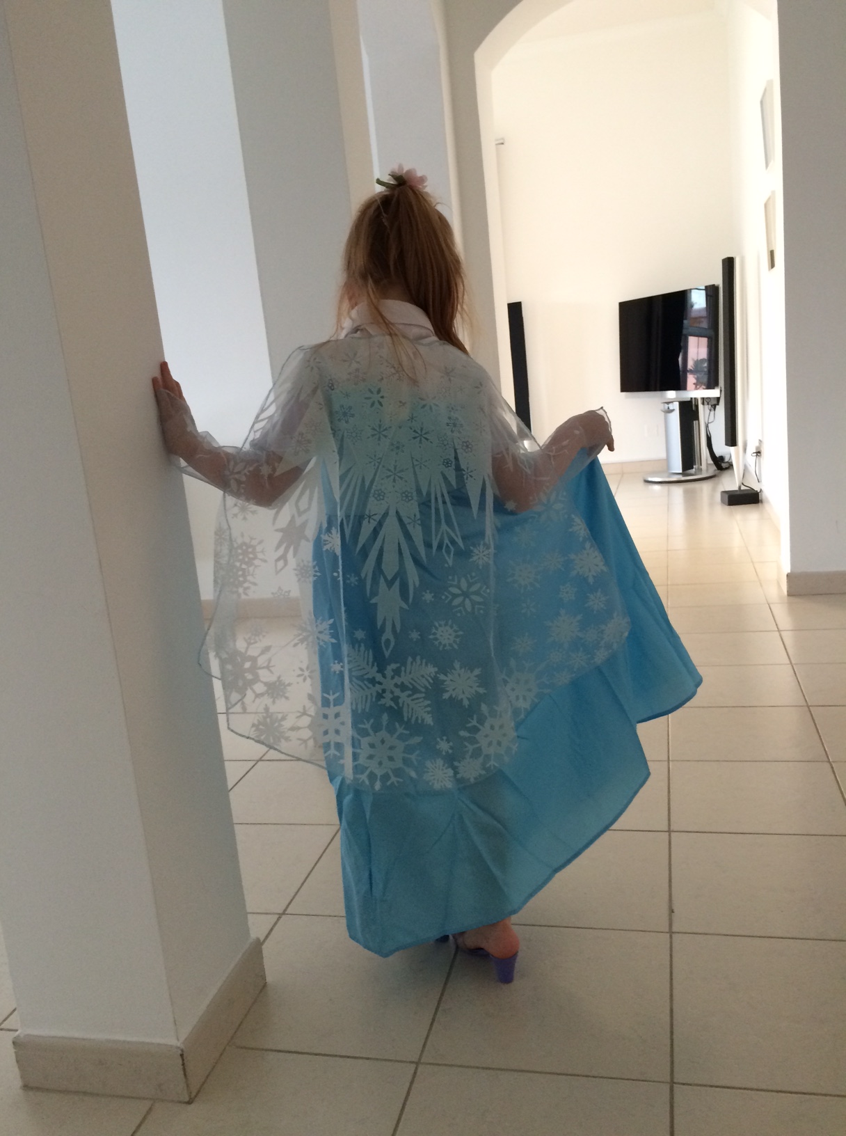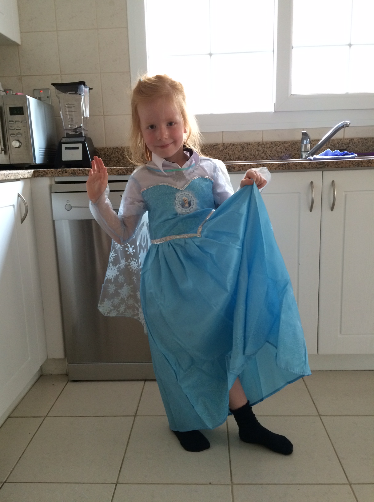 Cille er uendeligt stolt af sin fine Elsa-udklædningskjole.