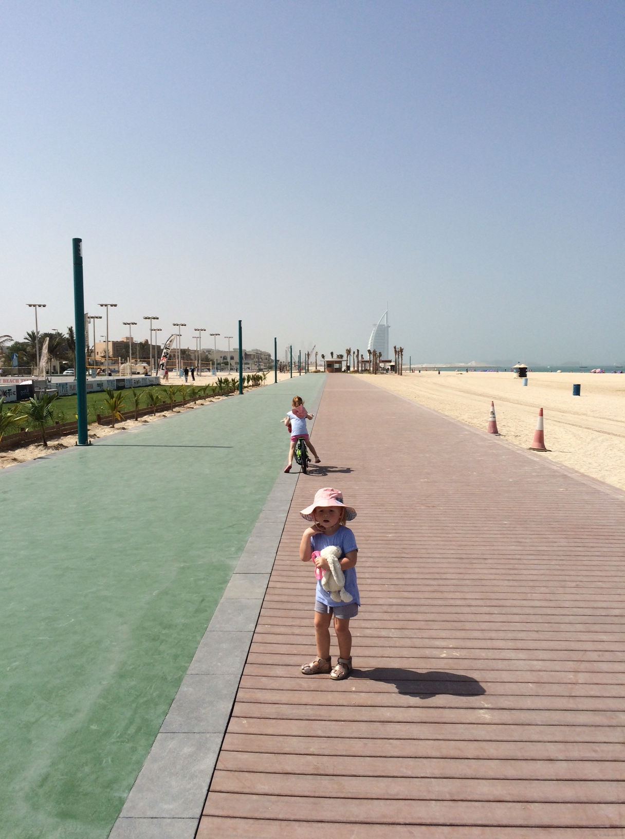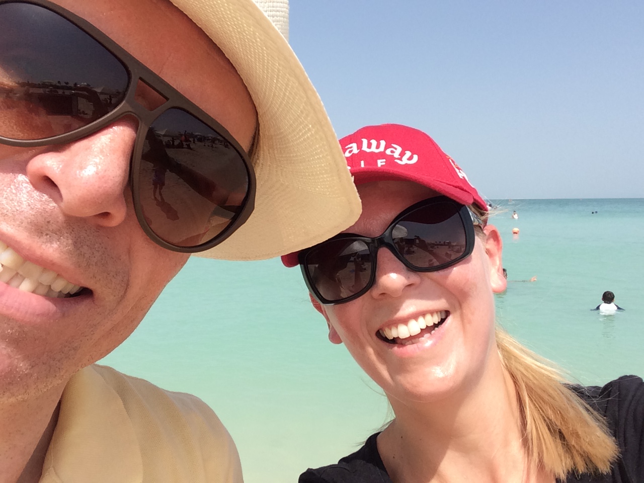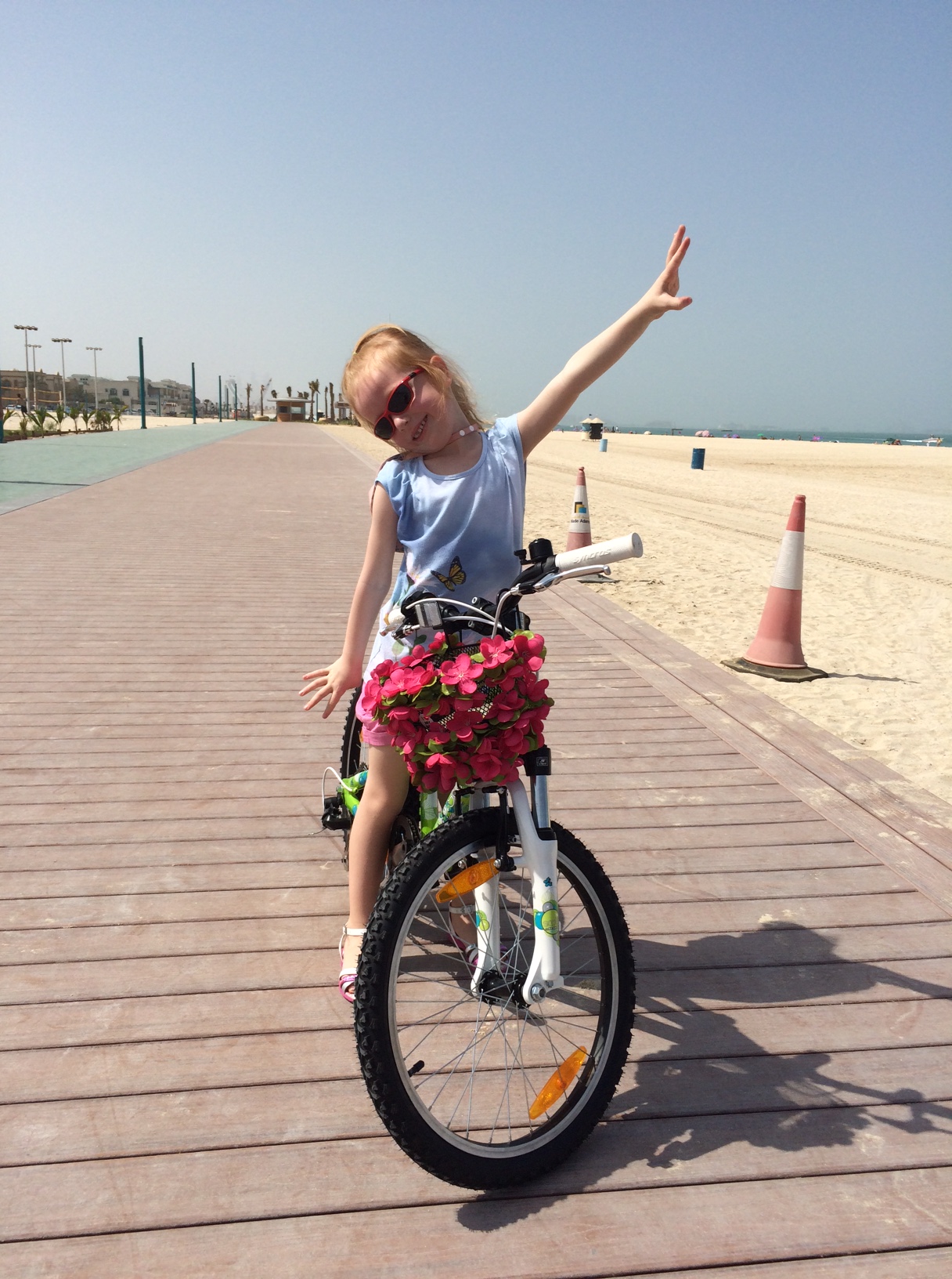 Efter en tur på cyklen, får vi overtalt “Peter Pedallos” til at komme med os ned på stranden.