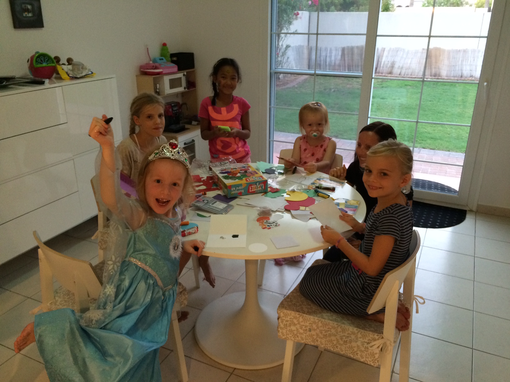 Efter svømning kommer Familien M’s søde pige L på besøg, fordi de 5 timers leg tidligere på dagen ganske enkelt ikke var nok. Kan man få nok i dén alder?