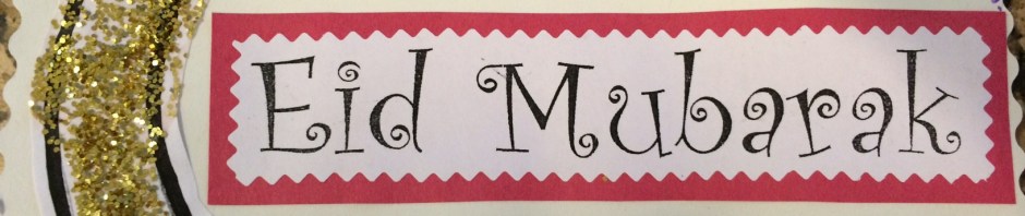 Mille har også lavet et fint Eid Al Adha kort i børnehaven. Jeg har været nødsaget til at snuppe kortet fra hende, da hun insisterer på at slikke glimmeret af med sin tunge.