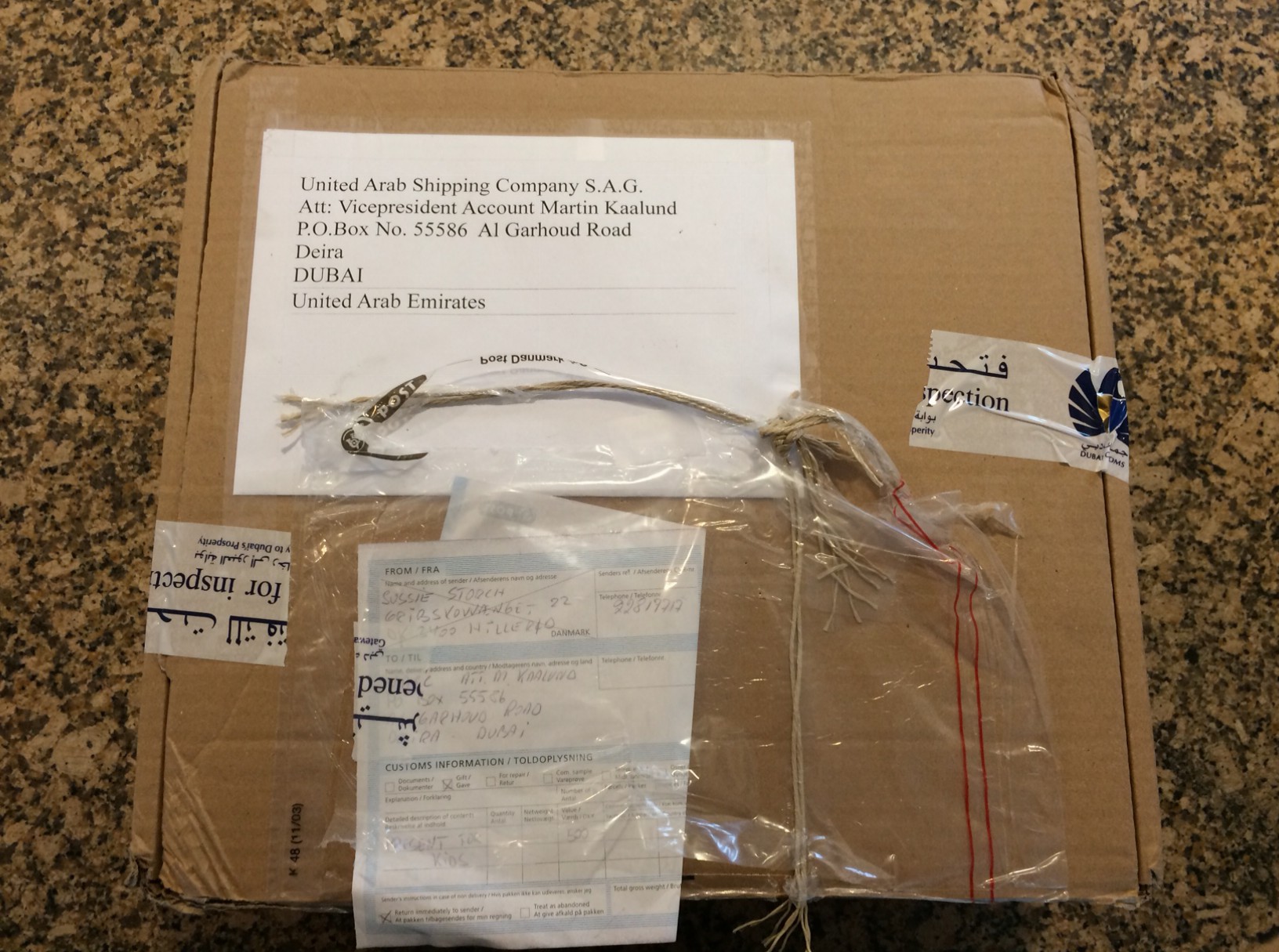 Pakken har været forbi toldvæsenet denne gang – men de var åbenbart ikke interesserede i danske saltlakridser – for de var heldigvis stadigvæk i pakken.