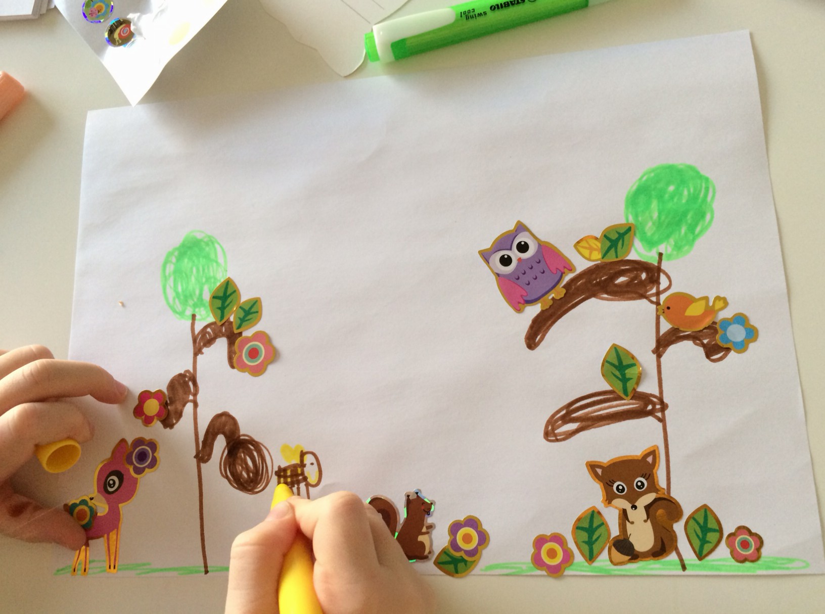 Én af Farmors dejlige postpakker er – meget belejligt – kommet lige til ferien, så trunterne er i fuld sving i krea-værkstedet.