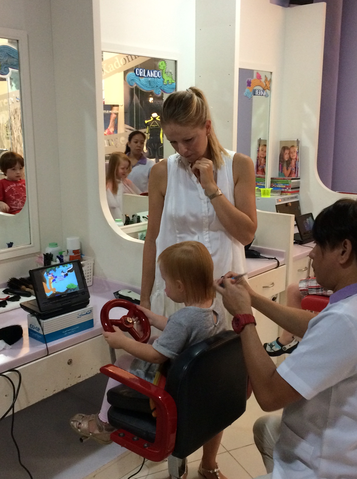 Pigerne kom lige en tur forbi børnefrisørsalonen og bagefter gik vi i “Favourite Things”, som er et lille legeland.