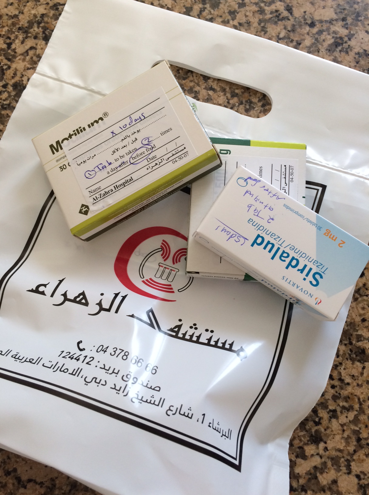Til slut får jeg lige en omgang muskelafslappende piller, som skal tages ved sengetid – fordi “dine ben bliver ret døsige af det, så du må ikke tage dem i dagstimerne”.