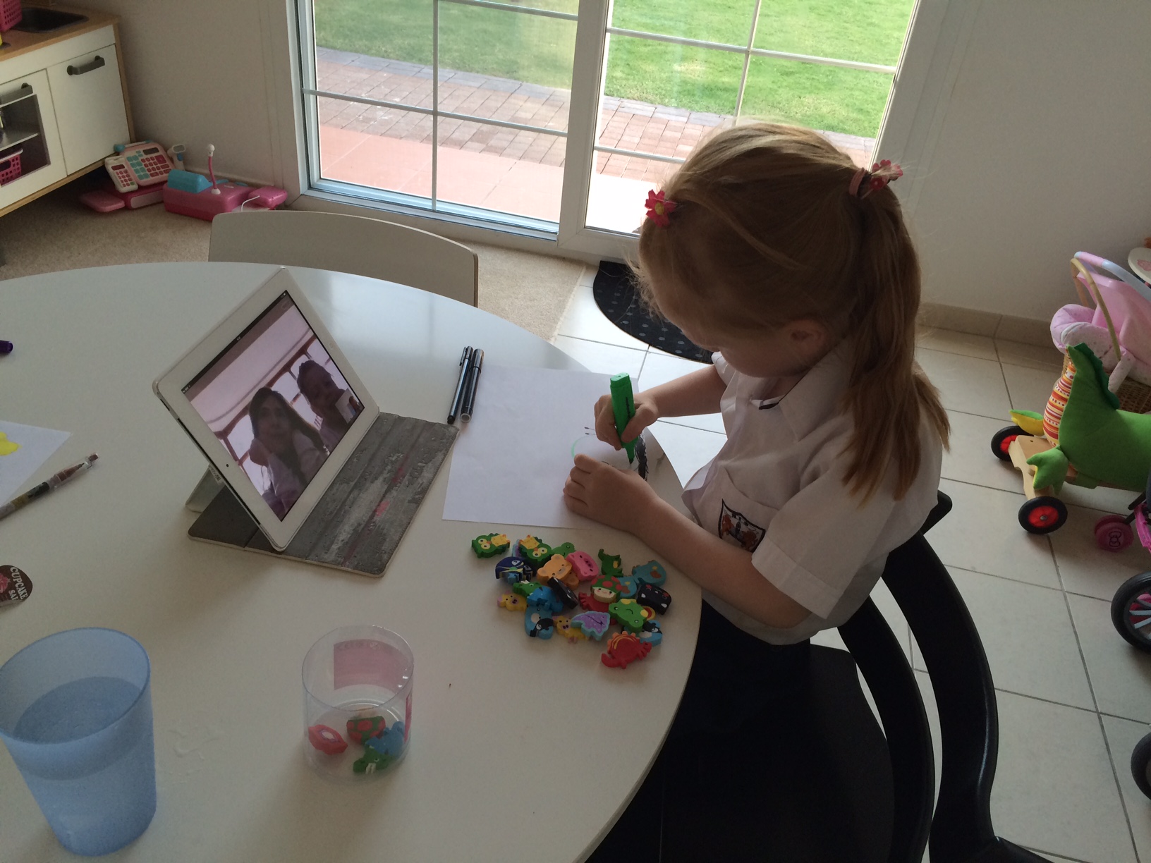 Og Cille skyper glad med sine gamle venner i England og tegner imens – man kan vel nemt to ting ad gangen?