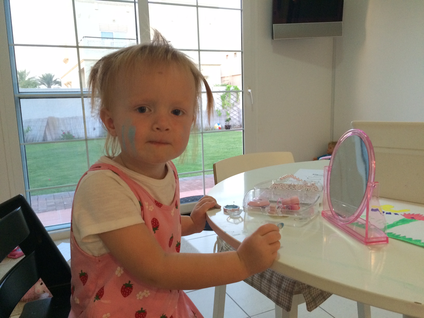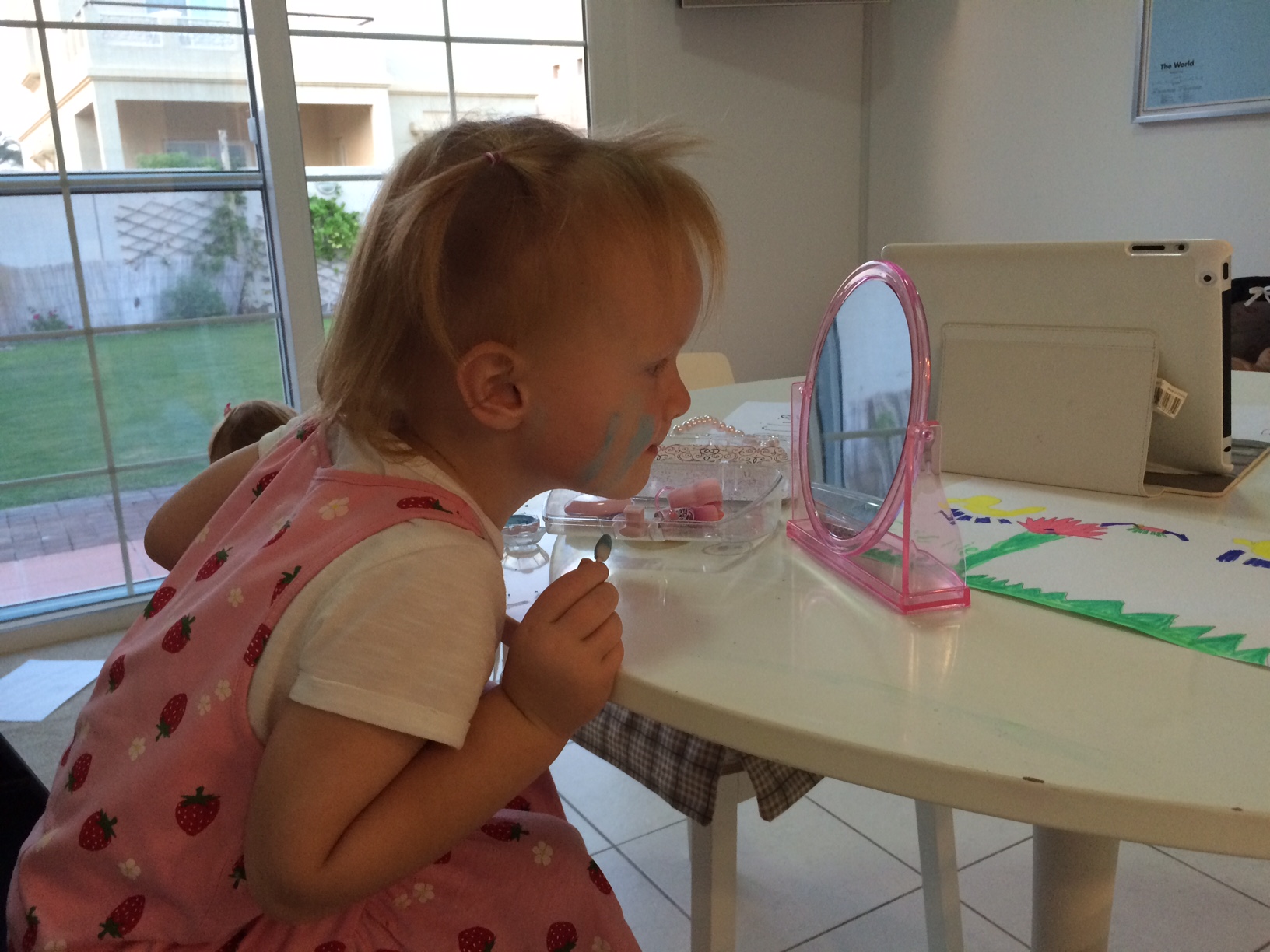 Lille My lægger koncentreret make-up og udbryder stolt: “Look, Mummy, Mia is beaufi-fi-ful!”